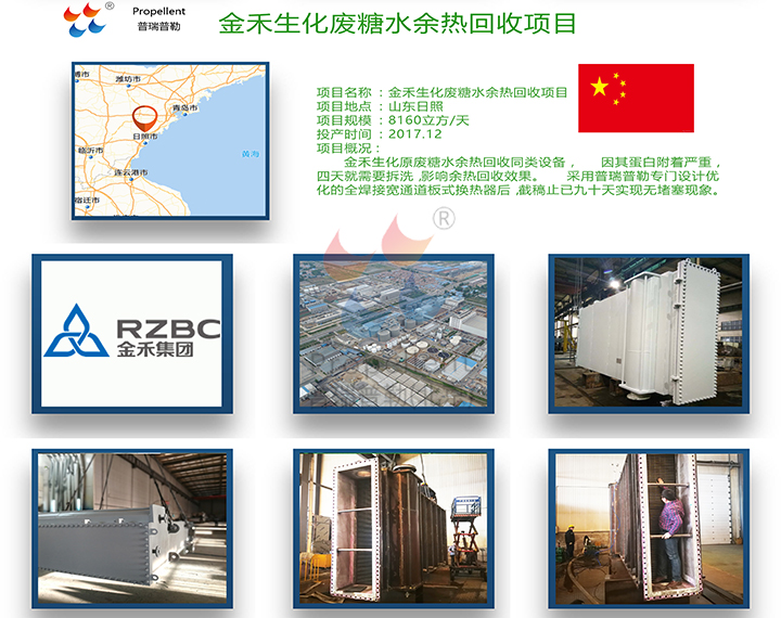 金禾生化原廢糖水余熱回收同類設(shè)備,因其蛋白附著嚴(yán)重,四天就需要拆洗,影響余熱回收效果。采用北京普瑞普勒專門(mén)設(shè)計(jì)優(yōu)化的全焊接寬通道板式換熱器后,截稿止已九十天實(shí)現(xiàn)無(wú)堵塞現(xiàn)象。
